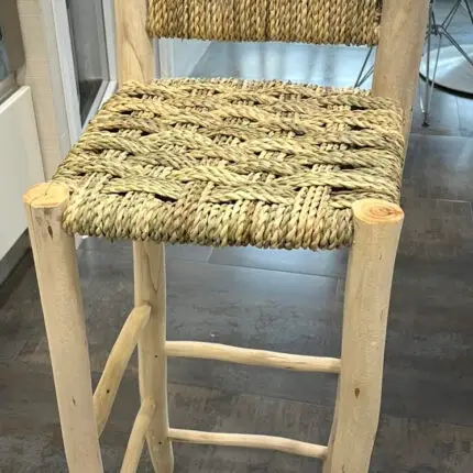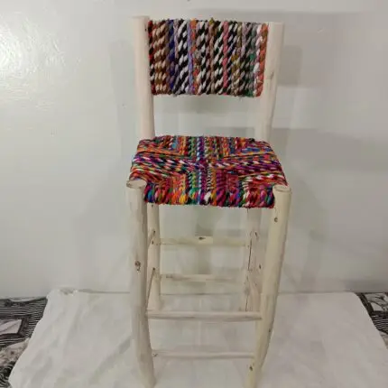 Roxanne Set of 2 Moroccan Boho Bar Stools Lemonwood & Boucherouite Cord – Counter Stool with Back for Kitchen Stool Living Room & Dining Room