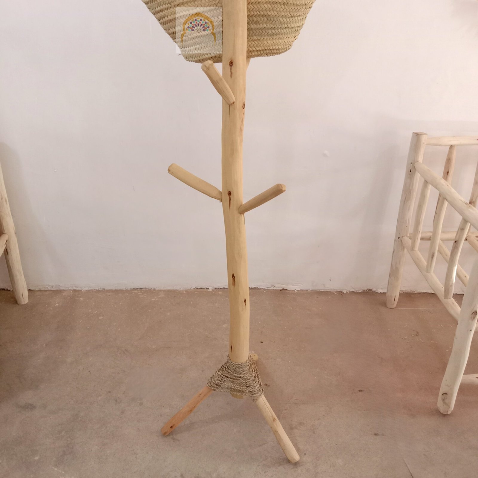 Handcrafted Scandinavian Lemon Wood Coat Rack – Rustic Solid Pine Standing Coat Hanger & Organizer Hall, Porte Manteau Scandinave en bois